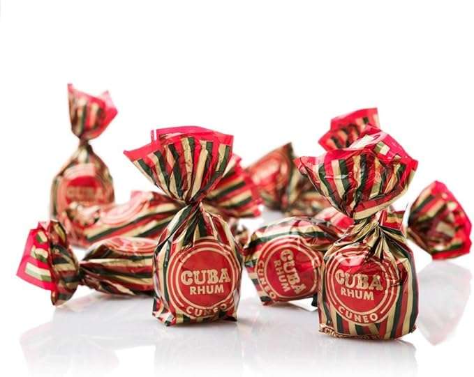 INGREDIENTI: Massa di cacao, Zucchero, Burro di cacao, Rum (59,9% Vol) 6.0%, Rum (54% Vol) 5.5%, Acqua, Sciroppo di glucosio, Cacao in polvere, Massa di cacao (Nuova Guinea), Emulsionante: lecitina di SOIA, Addensante: fibra vegetale (psyllium), Aroma naturale di vaniglia.