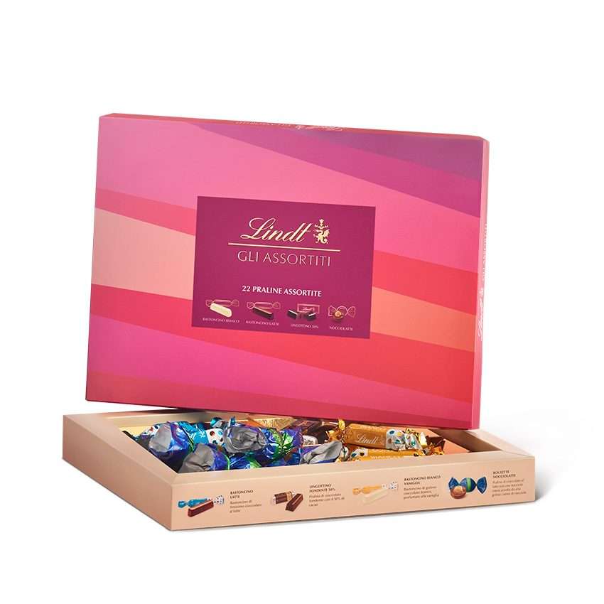 Lindt – Gli Assortiti (220g) Un assortimento premium di praline nate dall’arte dei Maîtres Chocolatiers Lindt. La scatola ideale da regalare o condividere, contenente quattro irresistibili varietà: