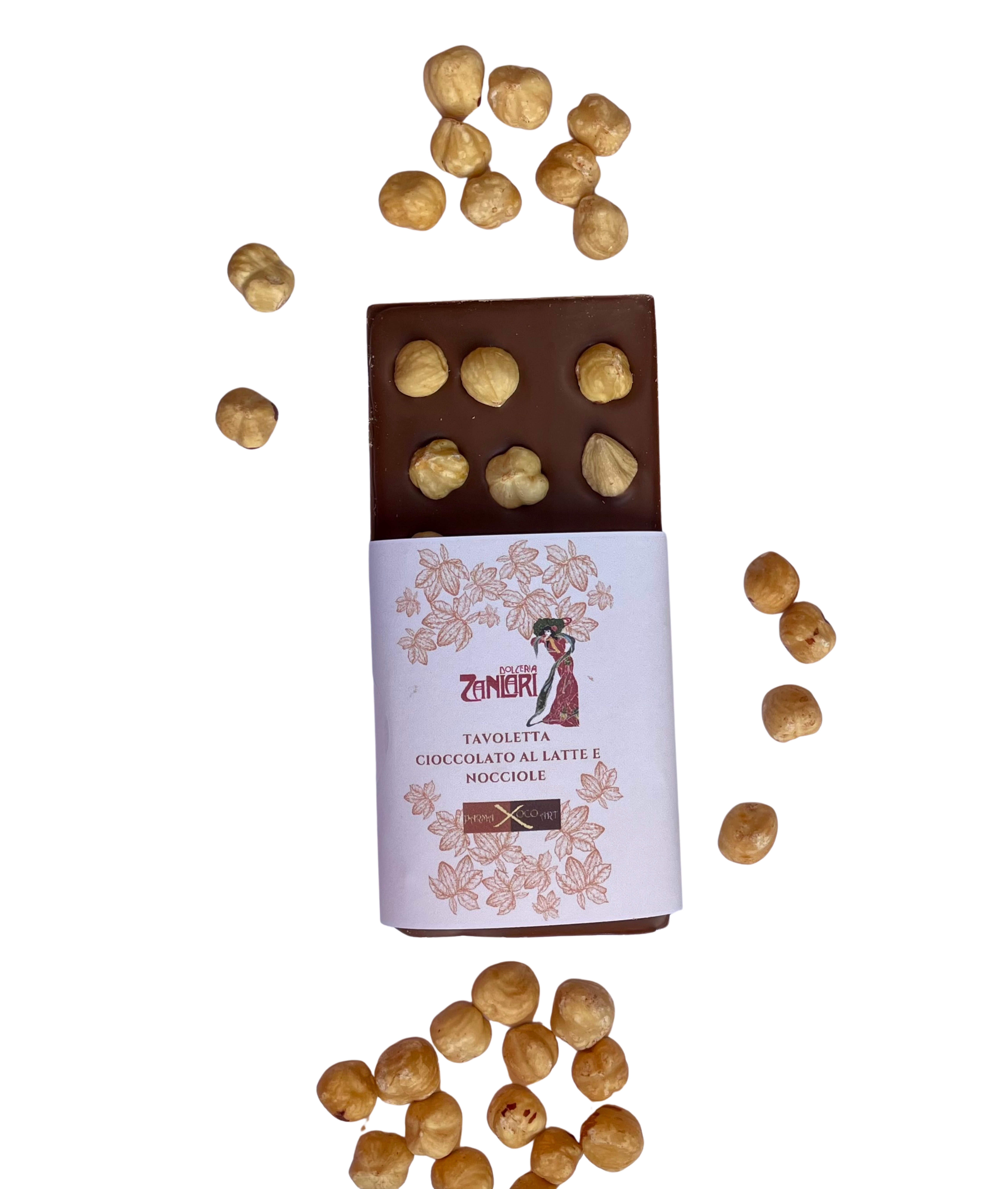 Ingredienti: Cioccolato al latte: (Cacao Min. 38,8%) zucchero, burro di cacao, latte intero in polvere, pasta di cacao, latte scremato in polvere Emulsionante: lecitina di soia, aroma naturale di vaniglia. nocciola (18%)